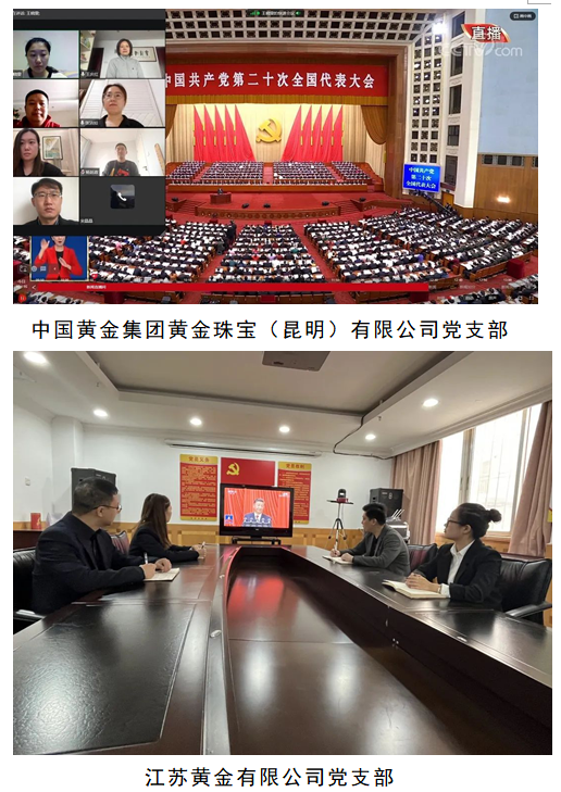 按照集团公司党委统一安排部署,中金珠宝党委认真组织全板块、全系统集中收听收看党的二十大开幕会,全力营造学习宣贯党的二十大精神的浓厚氛围。