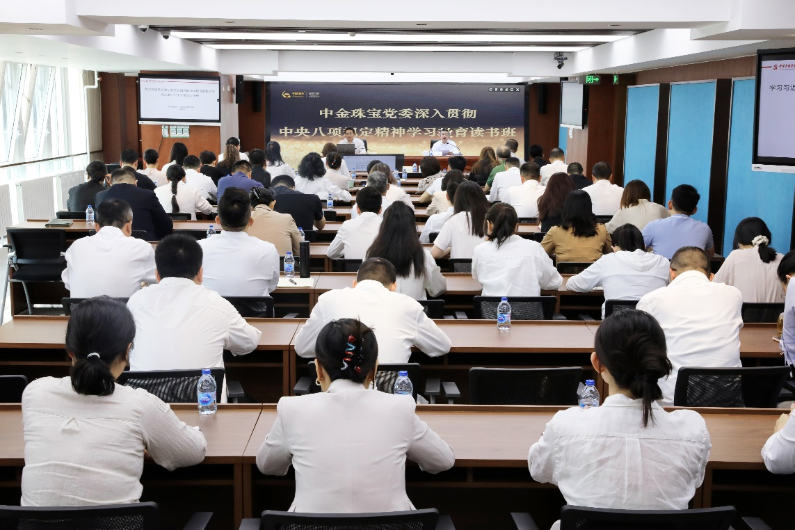 会议强调,在全党开展深入贯彻中央八项规定精神学习教育,是习近平总书记亲自点题、亲自部署的一项重要工作,也是今年党建工作的一项重点任务。要提高政治站位,充分认识在全党开展学习教育、加强党的作风建设的重大意义,深刻领会习近平总书记关于加强党的作风建设的重要论述和中央八项规定及其实施细则精神的精髓要义,切实增强贯彻落实的思想自觉、政治自觉、行动自觉。要聚焦关键环节,促进深入贯彻中央八项规定精神学习教育在全板块落实落地,坚持做到以“学”凝心铸魂、以“严”动真碰硬,一体推进“学查改”,推动建立健健康康的工作关系、清清爽爽的同志关系、规规矩矩的上下级关系,让职工群众看到成效和变化,真正做到学有质量、查有力度、改有成效。要强化责任担当,肩负起新时代赋予我们的新使命新任务,坚定好的作风是在奋发有为中干出来的,自觉做到 “干”字为先,下大力气谋划推动深化改革、科技创新、党的建设、风险防控等各项工作,以作风建设新成效强基固本,为中金珠宝高质量发展保驾护航。