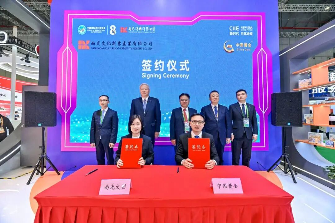 11月6日上午,周洲前往进博会南光(集团)有限公司展区,与南光集团董事长傅建国共同出席中金珠宝与南光文创战略合作协议签约仪式。根据战略合作协议,双方将围绕粤港澳大湾区及海外市场开拓、文化创意与体育赛事合作等领域开展深度合作,携手打造央企业务协同与创新发展的新典范。