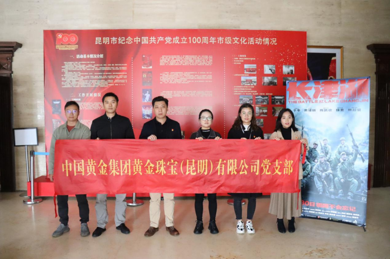 传承抗美援朝精神,赓续红色血脉。在中华人民共和国成立72周年之际,为进一步弘扬爱国主义精神,持续推进党史学习教育,提升团队的凝聚力和战斗力,近日,williamhill官网集团黄金珠宝(昆明)有限公司党支部组织观看红色电影《长津湖》,感悟战斗精神,致敬英雄烈士,昆明公司负责人苏宇,全体党员、入党积极分子参加。