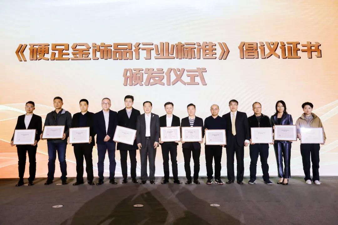 2020年是机遇和挑战并存的一年,对金饰产业也是如此。中国在世界舞台上已到达前所未有的高度,中国的金饰产业也迎来了蜕变重生的重大机遇。11月19日,由世界黄金协会和中国珠宝玉石首饰行业协会联合指导的2020珠宝产业资本论坛–黄金市场发展论坛暨《硬足金饰品行业标准》倡议发布会在北京举行。发布仪式上,向各零售企业及参与单位颁发了倡议证书。