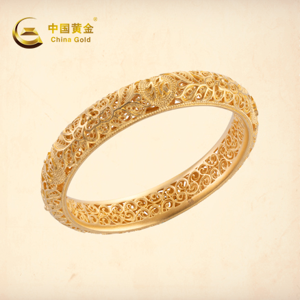 承福金系列 手镯-圆管金刚镯龙凤(内纹)
